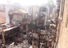 Dãy nhà bị ngọn lửa thiêu rụi thành đống đổ nát hoang tàn