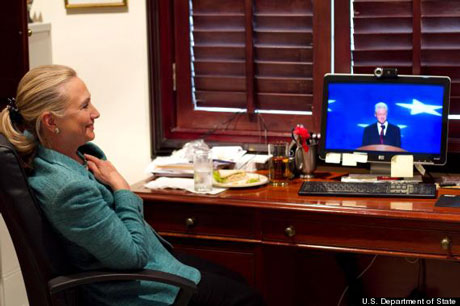 Ảnh Hillary Clinton chăm chú xem chồng phát biểu gây “sốt”