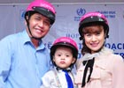 Gia đình Thanh Thúy làm điệu với mũ bảo hiểm
