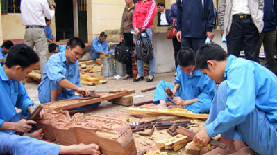 Các học viên đang học nghề mộc tại Trung tâm (ảnh: Cổng thông tin Vĩnh Phúc)