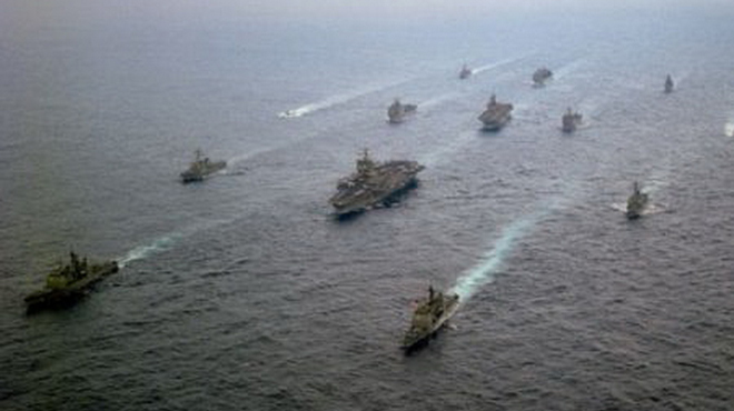 Cuộc tập trận do Mỹ dẫn đầu đang diễn ra trên vùng Vịnh - Ảnh: Press TV