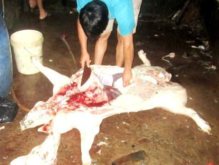 Từ một vụ đột kích bất ngờ của lực lượng liên ngành thú y huyện Bình Chánh ngày 27/8 vừa qua vào một cơ sở chế biến bò khô (tại căn nhà không số thuộc tổ 5, ấp 2, xã Vĩnh Lộc A), người ta mới tá hỏa biết rằng, bò khô được sản xuất tại đây 100% làm từ… lòng bò bẩn ngâm tẩm hóa chất!