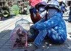 Gánh hàng bán chim của các cô, các chị trên vỉa hè Đà thành