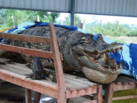 Xác cá sấu hiếm nổi trên mặt hồ