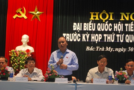 | Phó Thủ tướng Chính phủ Nguyễn Xuân Phúc tiếp xúc cử tri huyện Bắc Trà My, Quảng Nam xung quanh vấn đề Thủy điện Sông Tranh 2 hôm 30/9. |