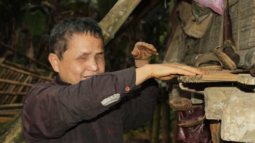 Ông kể: Cách đây mấy chục năm, ông c̣n lên rừng chặt gỗ về làm nhà. Khi đó rừng c̣n nhiều, ông chỉ việc lên t́m gỗ. Khi gặp cây nào ưng ư ông chỉ việc dang tay ra ôm lấy cây để áng chừng xem cây đó có thể làm cột nhà không. Thậm chí ông c̣n trèo cả lên cây để “đo độ dài” của cây gỗ, sau đó mới chặt hạ rồi nhờ người khiêng về.