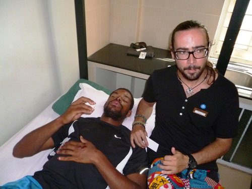 Ngay lập tức, chị Charlotte đưa anh Ruben vào bệnh viện cấp cứu với thương tích gãy 2 cái răng, bị thương vùng trán... Khi đưa Ruben vào nhập viện, chị Charlotte khai với bác sĩ: anh Ruben cho biết anh bị ngã khi đuổi theo tên trộm, nhóm trộm cũng chỉ có 2 người. Các bác sĩ điều trị cho Ruben xác định, vết thương của anh nhiều khả năng là do bị ngã hơn là bị đánh. Làm việc với công an, anh Ruben cho biết do uống quá nhiều rượu nên anh không nhớ rõ là mình bị ngã, hay bị đánh.