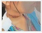 Vết thương khâu 12 mũi trên cổ H.