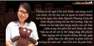 Mới đây nhất, ngày 20 tháng Mười năm 2012 một thư cầu cứu khẩn cấp của 109 sinh viên trường Đại học Công Nghiệp Thực phẩm thành phố Hồ Chí Minh gửi cho Chủ tịch nước Trương Tấn Sang kêu cứu cho sinh viên Nguyễn Phương Uyên bị bắt giữ không minh bạch. Cũng từ bức thư cảm động này đã tác động mạnh mẽ đến lương tâm người nghe câu chuyện và 10 ngày sau, ngày 30 tháng Mười năm 2012, lá thư khẩn gửi Chủ tịch nước Trương Tấn Sang có chữ ký của 144 người đa số là trí thức với mục đích hỗ trợ cho cho những người trẻ có tấm lòng với mệnh nước như sinh viên Phương Uyên.