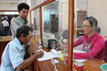 Một hộ nghèo làm thủ tục vay vốn tại Ngân hàng chính sách