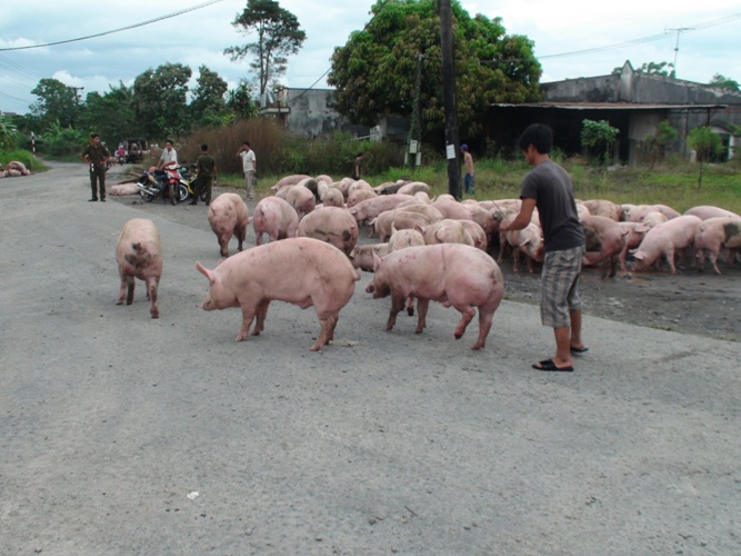 Xe tải lật, hàng trăm con heo tung tăng dạo phố