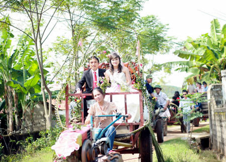 Đám rước dâu bằng xe công nông 'độc, lạ' tại Nghệ An