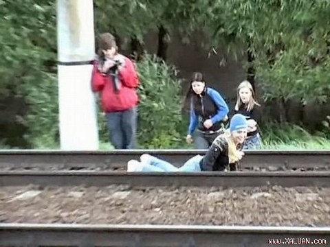 Cô gái liều lĩnh... để tàu hỏa chạy trên người