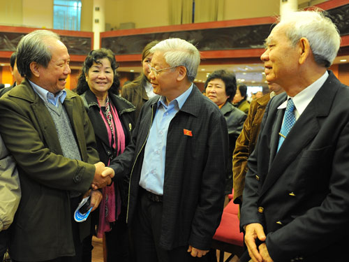 Ngày 1.12, Tổng bí thư Nguyễn Phú Trọng cùng các đại biểu Quốc hội (QH) đơn vị bầu cử số 1 của Hà Nội đã có buổi tiếp xúc cử tri các quận Ba Đình, Hoàn Kiếm để báo cáo kết quả kỳ họp thứ 4 QH khóa 13.