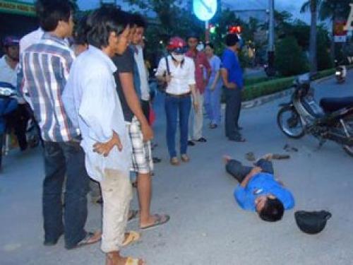Hàng chục người xúm xít xem người bị nạn nhưng không ai đưa đi cấp cứu