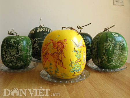 Ngắm dưa hấu được chạm khắc, tạo hình hồ lô, thỏi vàng