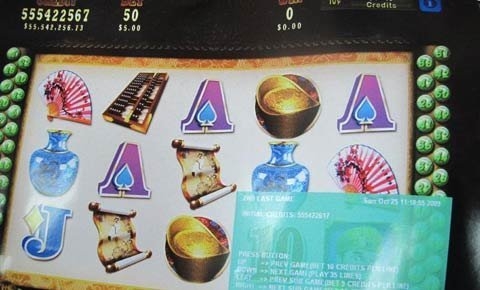 Màn hình máy đánh bạc số 13 và con số báo trúng thưởng 55,5 triệu USD