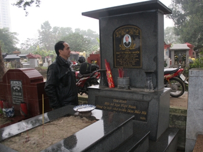 Cụ Ngoan dẫn chúng tôi ra khu nghĩa  trang thôn Yên Phúc, nơi chôn cất những người thân trong gia đình cụ  Bưởi. Cách đây 6 năm Hội Khoa học Lịch sử Việt Nam đã đưa hài cốt của cụ  từ Quảng Ninh về đây chôn cất. "Tôi đại diện cho gia đình xuống dưới  Quảng Ninh để nhận hài cốt của cụ Bưởi. Tôi nghe nói cụ mất ngoài đảo  Vân Đồn. Quan tài cụ nằm có bốn đầu rồng bằng vàng, bên trong chứa vàng.  Trước đây có kẻ hám của đã ra đào mộ cụ lên để lấy vàng, sau này bị  điên phải mang trả về chỗ cũ", cụ Ngoan kể.