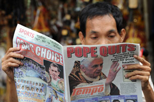 Hầu hết các báo chí trên thế giới đều chạy tin Đức Giáo Hoàng Benedict XVI đă công bố từ nhiệm hôm 11 tháng 2, 2013./AFP