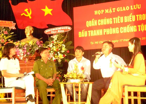 | Một chương tŕnh giao lưu với người dân có thành tích chống tội phạm. |