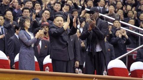 Hôm 26/2, ngôi sao bóng rổ Rodman đã tới thăm Bình Nhưỡng, được nhà lãnh đạo Triều Tiên tiếp đón nồng nhiệt. Hai ông đã cùng nhau xem một trận thi đấu bóng rổ và dùng tiệc tối "hoành tráng".