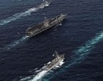 Tàu khu trục Aegis Hàn Quốc hộ vệ tàu chỉ huy Mỹ trên biển Nhật Bản