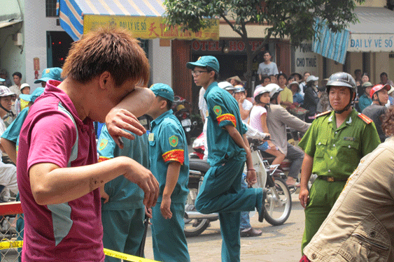 Người nhà các nạn nhân cho biết lực lượng cứu hỏa chỉ phun vòi rồng dập tắt đám cháy nhưng không ai dám tiếp cận hiện trường. Anh Huỳnh Chí Phong buồn bã nói: “Tôi đã nói là cả nhà tôi đang mắc kẹt trong nhà nhưng hình như không ai thèm đả động đến. Chúng tôi nóng lòng muốn chạy vào đưa người thân ra nhưng họ không cho nên cả nhà tôi đã cự với họ”. Một người thân khác của nạn nhân nói: “Một vụ cháy xảy ra lúc 22 giờ mà đến gần 3 giờ sáng hôm sau họ mới đưa được xác 3 người thân của chúng tôi ra ngoài. Sao họ không làm nhanh được? Biết đâu nếu nhanh hơn thì có thể có người còn sống”.