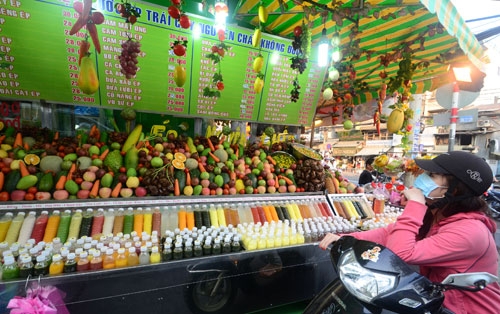 Trong khi đó, trên đường phố, món nước thốt nốt ướp lạnh - đặc sản của An Giang được bày bán trên các xe đẩy xuất hiện khá nhiều, giá khoảng 10.000đ/ly gồm cả nước và cơm thốt nốt. Bên cạnh những món giải khát quen thuộc như: nước mía, rau má, mía lau..., mùa nóng năm nay c̣n có thêm nhiều sản phẩm “thiên nhiên”: sữa bắp non (giá 9.000 - 10.000đ/chai), nước rong biển (6.000 - 7.000đ/chai), rau má, đậu nành (8.000đ/chai), nước ép củ sen (12.000 - 15.000đ/chai) được bày bán trên đường phố. Bị coi là món “nóng”, nhưng lại thu hút không ít người tiêu dùng trong mùa nóng năm nay là nước sầu riêng ép với giá từ 40.000 - 45.000đ/chai. Sản phẩm mới, được nhiều phụ nữ ưa thích nhờ yếu tố “dưỡng sắc” là nước ép bí non (loại bí xanh dùng để nấu canh) giá 10.000 - 12.000đ/chai, nước nha đam đường phèn 10.000đ/chai…