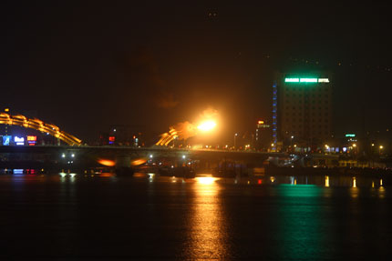 Originally Posted by qthinh  Cầu rồng quá độc, nhưng cái đầu rồng cần phải vươn lên cao hơn mới đẹp. |  cái đầu rồng bị thun so với thiết kế ban đầu, nghe nói ở dè nẻng cái gì cũng thun. Hehehe