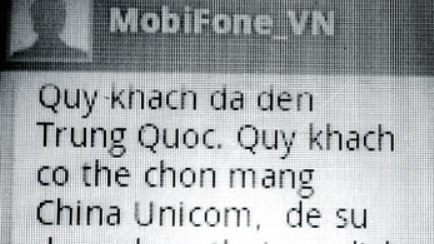Theo đó, chỉ mấy phút sau khi đặt chân đến bến xe Bản Giốc (cách thác Bản Giốc khoảng 1km), cạnh đó là ḍng sông Quây Sơn, đường biên giới tự nhiên giữa hai nước Việt Nam và Trung Quốc, độc giả Vũ Thống Nhất cũng như nhiều người trong doàn tham quan có dùng điện thoại mạng Mobifone nhận được tin nhắn nguyên văn: “Mobifone - VN. Mobifone, Quy khach da den Trung Quoc. Quy khach co the chon mang China Unicom, de su dung dong thoi cac dich vu: thoai, sms, data. Chi tiet vui long lien he +84904 144 144 (tinh cuoc nhu goi ve VN)”.