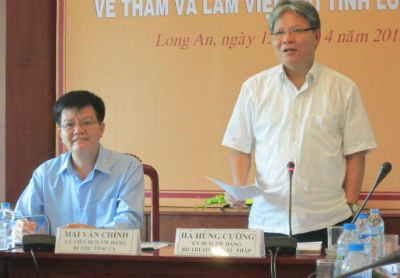 Đoàn công tác của Bộ Tư pháp do Bộ trưởng Hà Hùng Cường dẫn đầu mới làm việc với Tỉnh ủy, UBND, các sở, ban, ngành của tỉnh Long An về công tác tư pháp và thi hành án dân sự (THADS) trên địa bàn tỉnh. Bí thư Tỉnh ủy Mai Văn Chính, Chủ tịch UBND tỉnh Đỗ Hữu Lâm, Chủ tịch HĐND tỉnh Đặng Văn Xướng, Phó Chủ tịch UBND tỉnh Nguyễn Thanh Nguyên cùng dự buổi làm việc.
