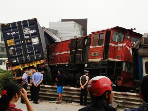 Cả đoàn tàu tông trực diện, xé đôi container