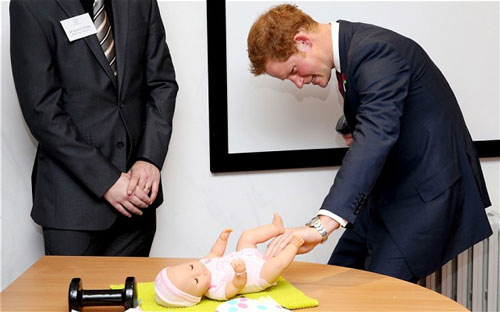 Hoàng tử Harry lóng ngóng thay tã cho trẻ