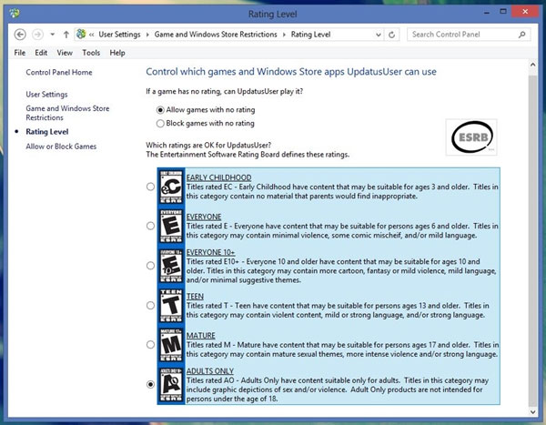 Sử dụng tính năng Family Safety để giới hạn người dùng trong Windows 8