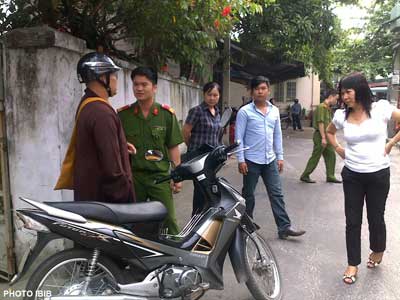 Cảnh sát và an ninh Đà Nẵng chặn, hạch sách Đại Đức Thích Thiện Phúc trước cổng chùa Giác Minh. Chùa Giác Minh là một trong những dẫn chứng được Bộ Ngoại Giao Hoa Kỳ sử dụng để chứng minh chính quyền CSVN áp dụng chính sách hai mặt về tôn giáo. (H́nh: GHPGVNTN)