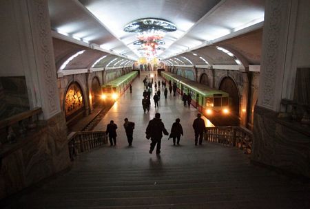 Một nhà ga tàu điện ngầm rộng lớn ở Bình Nhưỡng.