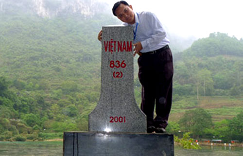 Ông Đặng Văn Dũng bên cột mốc chủ quyềnở biên giới Việt -Trung tỉnh Cao Bằng
