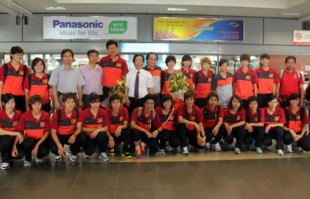 Đội tuyển nữ Việt Nam được đón tiếp nồng nhiệt ngày về nước
