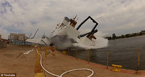 Hạ thủy bất thành, chiến hạm khổng lồ lật nghiêng