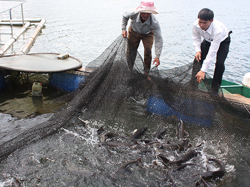 Trong ảnh: Thu hoạch cá tầm ở Lâm Đồng Ảnh: NGUYỄN DŨNG