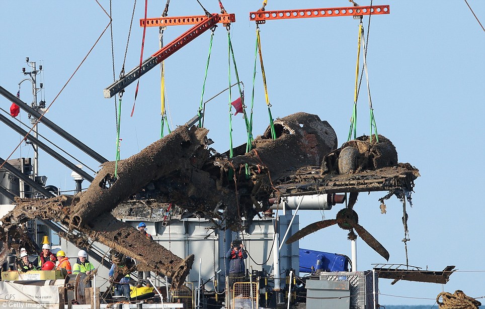 Cận cảnh trục vớt máy bay thế chiến từ đáy biển