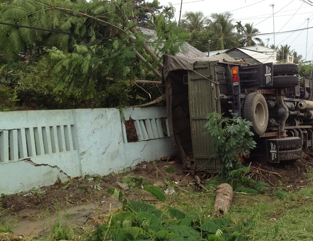 Xe biển đỏ chở 20 quân nhân gặp nạn
