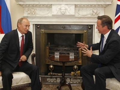 Sau cuộc gặp riêng với Tổng thống Nga Vladimir Putin hôm chủ nhật, Thủ tướng Anh David Cameron nói rằng, hai bên bất đồng về vấn đề Syria, nhưng cùng chung mục tiêu là chấm dứt cuộc xung đột. Ông Putin nói rằng, cả quân chính phủ và phe nổi dậy ở Syria “tay đều dính máu”; Nga không vi phạm điều luật nào khi cung cấp vũ khí cho “chính phủ hợp pháp của Syria”.