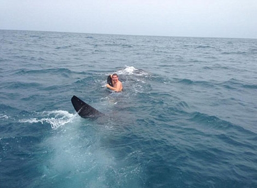 Liều mạng cưỡi cá mập khổng lồ hơn 20 tấn