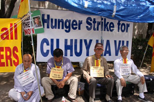 Dưới cái nắng cháy da của mùa Hè Texas, vào trưa thứ Sáu,14 tháng Sáu, năm người Mỹ gốc Việt ngồi tọa kháng trước tòa Tỏng Lãnh sự Việt Nam để đồng hành với BS Phạm Hồng Sơn, TS Nguyễn Quốc Quân cũng như nhà dân chủ Phạm Thanh Nghiên, và nhiều người khác đang tuyệt thực để hỗ trợ cuộc tuyệt thực của TS Luật Cù Huy Hà Vũ, đang đến ngày thứ 19 trong lao tù Việt Nam. Sau lưng họ là những tấm biểu ngữ bằng tiếng Anh như: "Trả Tự Do cho Những Người Tù Chính Trị" - Freedom For All Politic Prisoners, "Tuyệt Thực cho TS Cù Huy Hà Vũ" - Hunger Strike For Cu Huy Ha Vu...