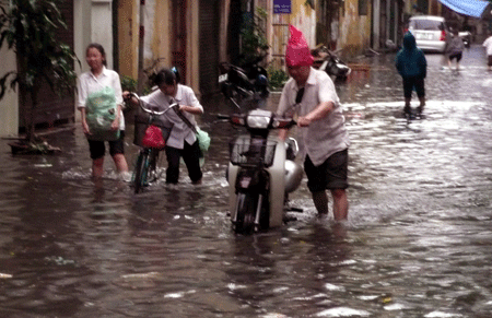 H́nh ảnh thường thấy trên một số tuyến phố của Thủ đô mỗi khi mưa lớn