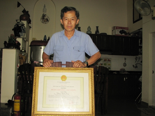 Võ sư Đoàn Đình Long bên tấm Huân chương Lao động hạng Nhì do Nhà nước trao tặng