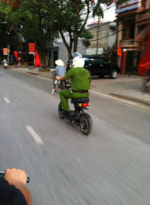 Ảnh "nóng" Facebook: Xăng tăng giá, công an đi xe đạp điện?