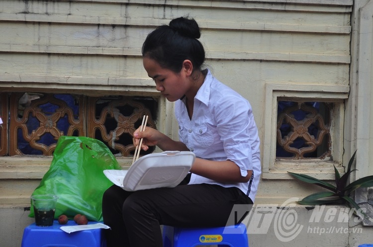 Cận cảnh bữa cơm trưa bên hàng rào trường thi