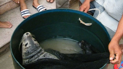 Hải cẩu xám 30kg vào lưới ngư dân Đà Nẵng ăn cá
